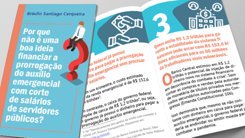 Intitulado “Por que não é uma boa ideia financiar a prorrogação do auxílio emergencial com corte de salários de servidores públicos?”, o estudo, produzido pelo mestre em economia e auditor federal de Finanças e Controle Bráulio Cerqueira, apresenta nove razões pelas quais a medida seria contraproducente do ponto de vista econômico.