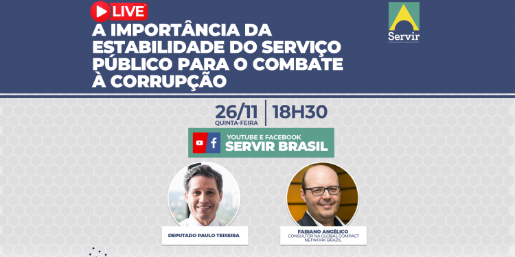 A Frente Parlamentar Mista em Defesa do Serviço Público (Servir Brasil) promove, nesta quinta-feira, 26 de novembro, debate ao vivo com o tema “A importância da estabilidade para o combate à corrupção”. O pesquisador e especialista em Accountability, Transparência e Integridade, Fabiano Angélico, participa da conversa, medidada pelo deputado federal Paulo Teixeira (PT/SP), coordenador para a Estabilidade da Frente.